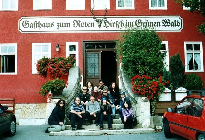 Kaz, Andre, Silver, Suzi, Leif, Susi, Olli, Jenny, Alphaandre, Jessy, Alien und Clare (v.l.) vor dem Hotel in Saalfeld